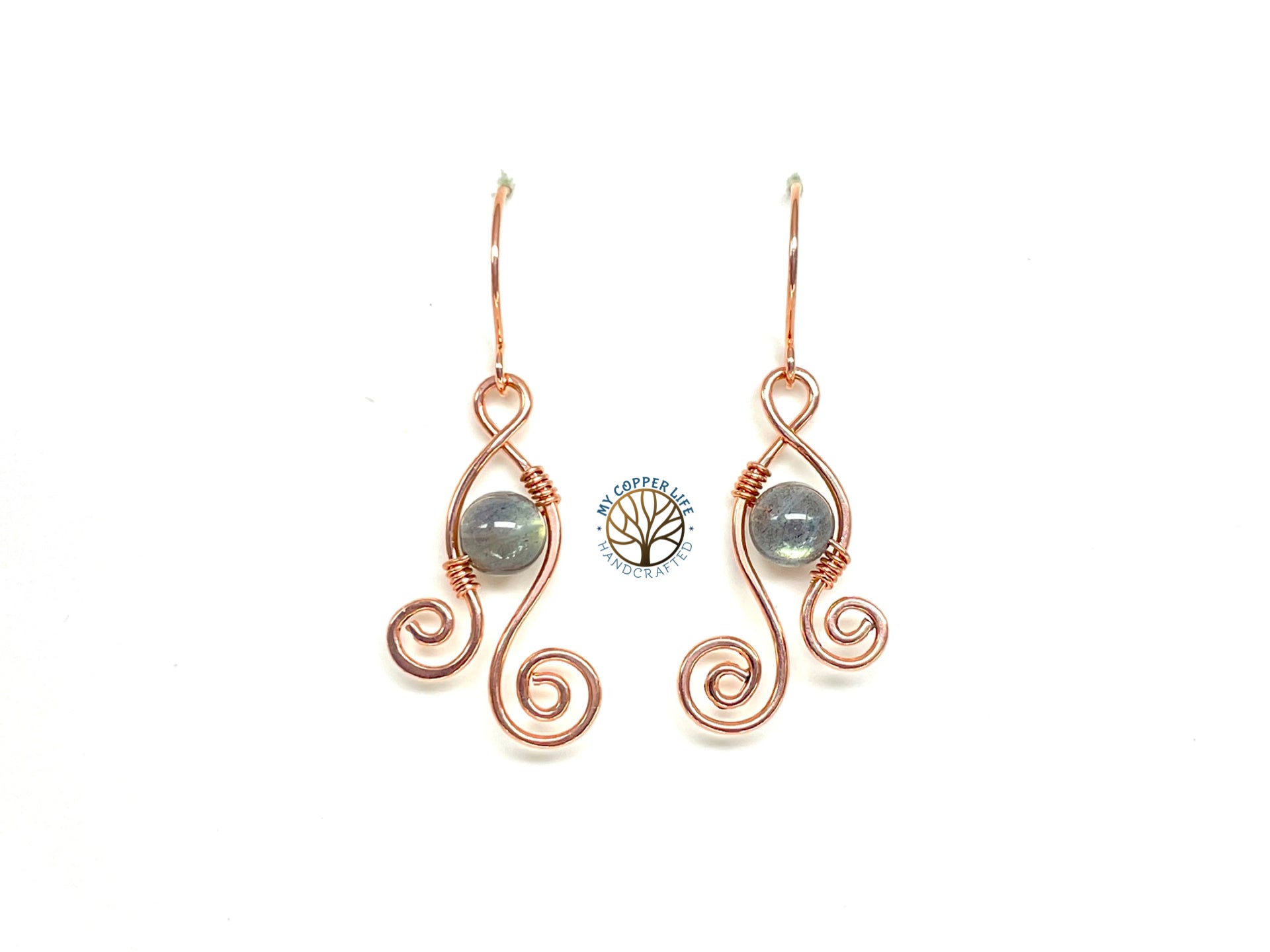 Labradorite beaded copper wire earrings. Ear wires are handcrafted to match.