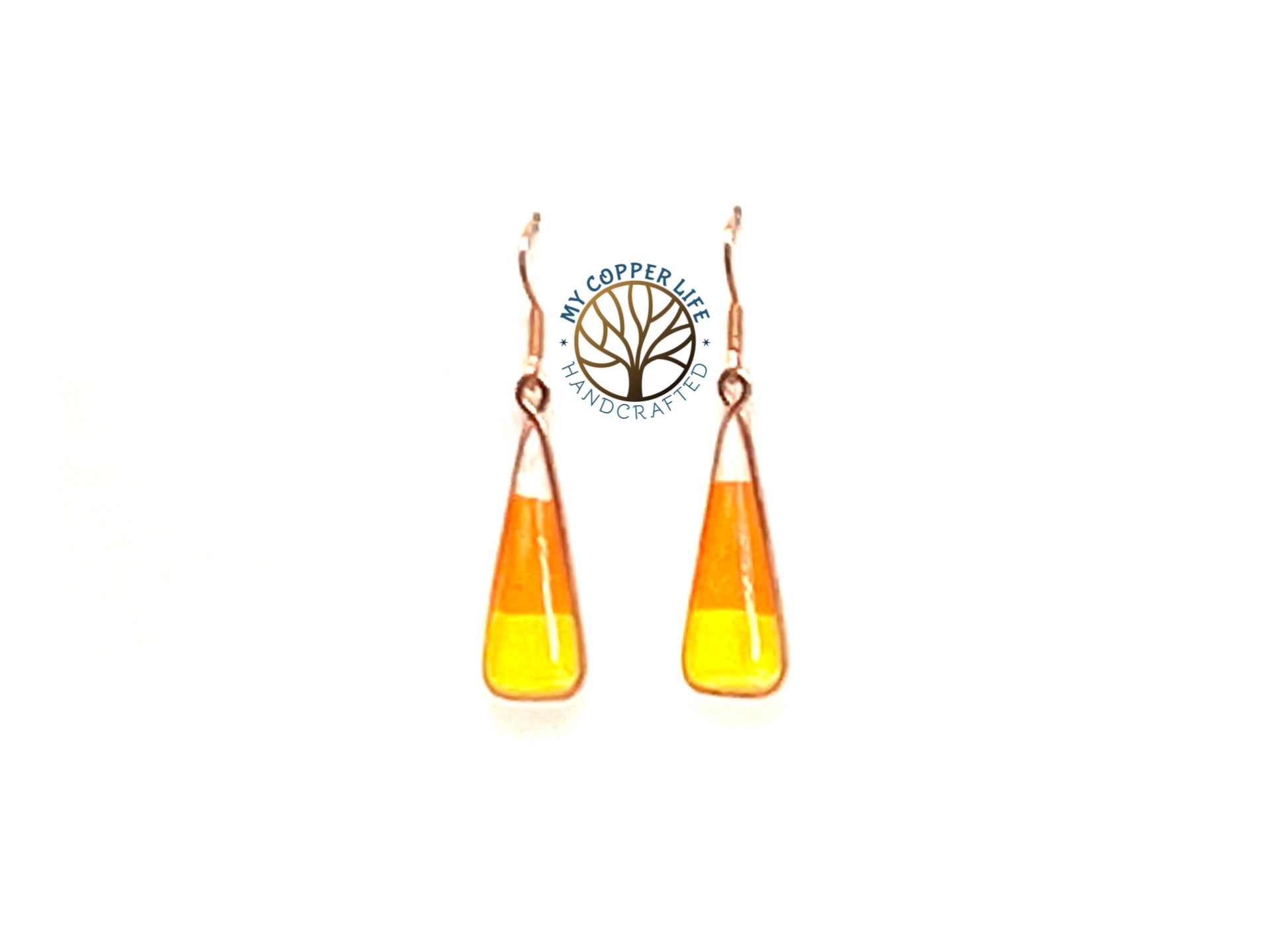 Copper wire candy corn basil fillers with resin to make these gorgeous candy corn earrings. Comes with handcrafted copper wire ear wires.