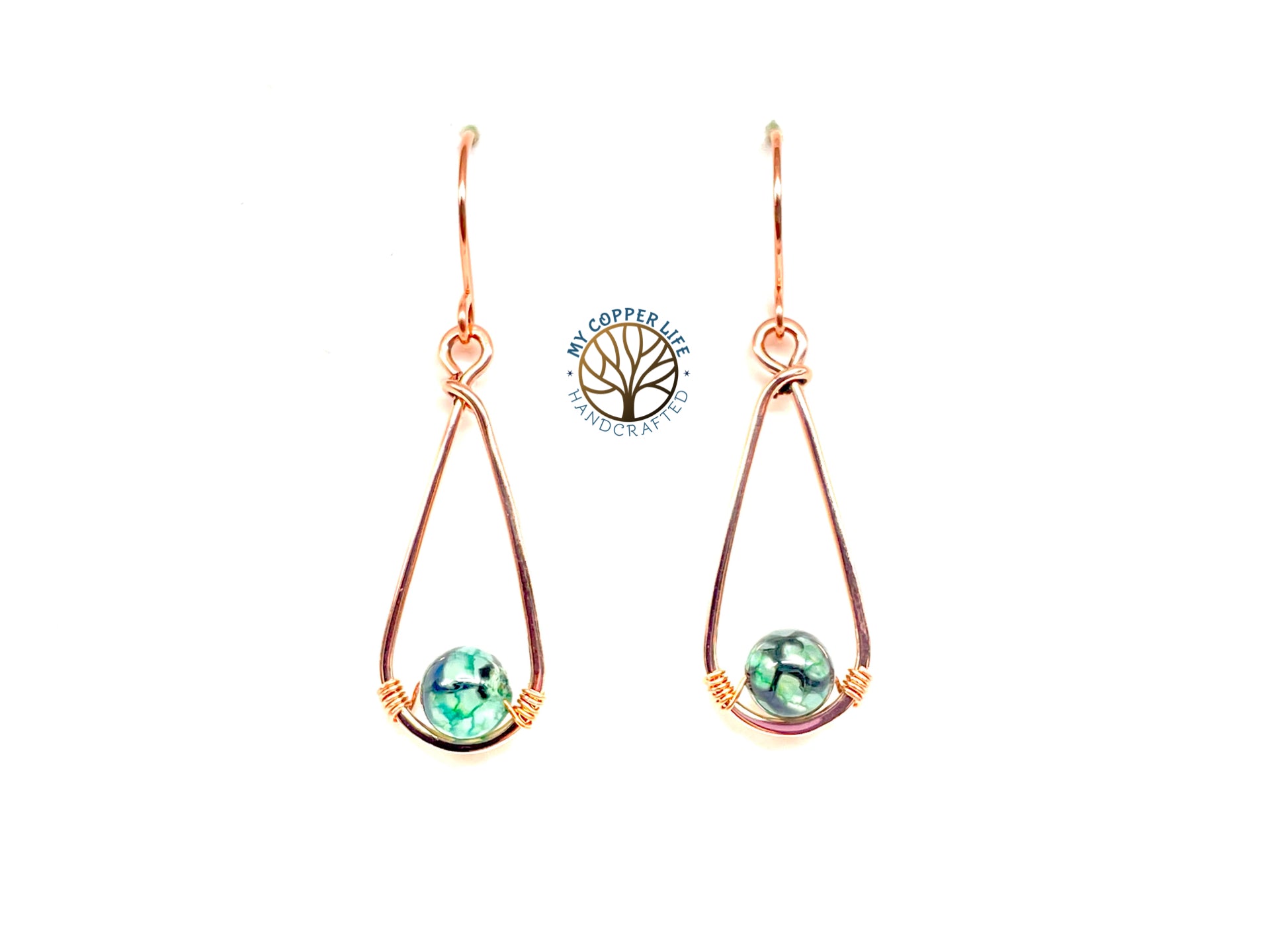 Copper wire earrings with Dragon Vein beads. Comes in handcrafted ear wires to match.