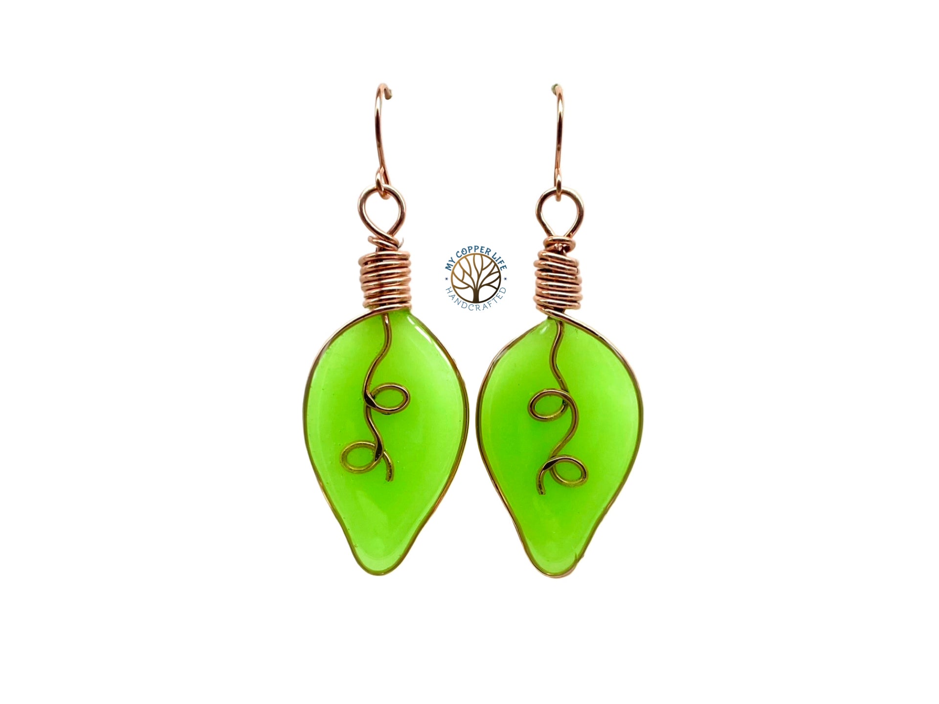 Glow in the dark christmas light earrings. Made with copper wire and resin. Ear wires are handmade to match.
