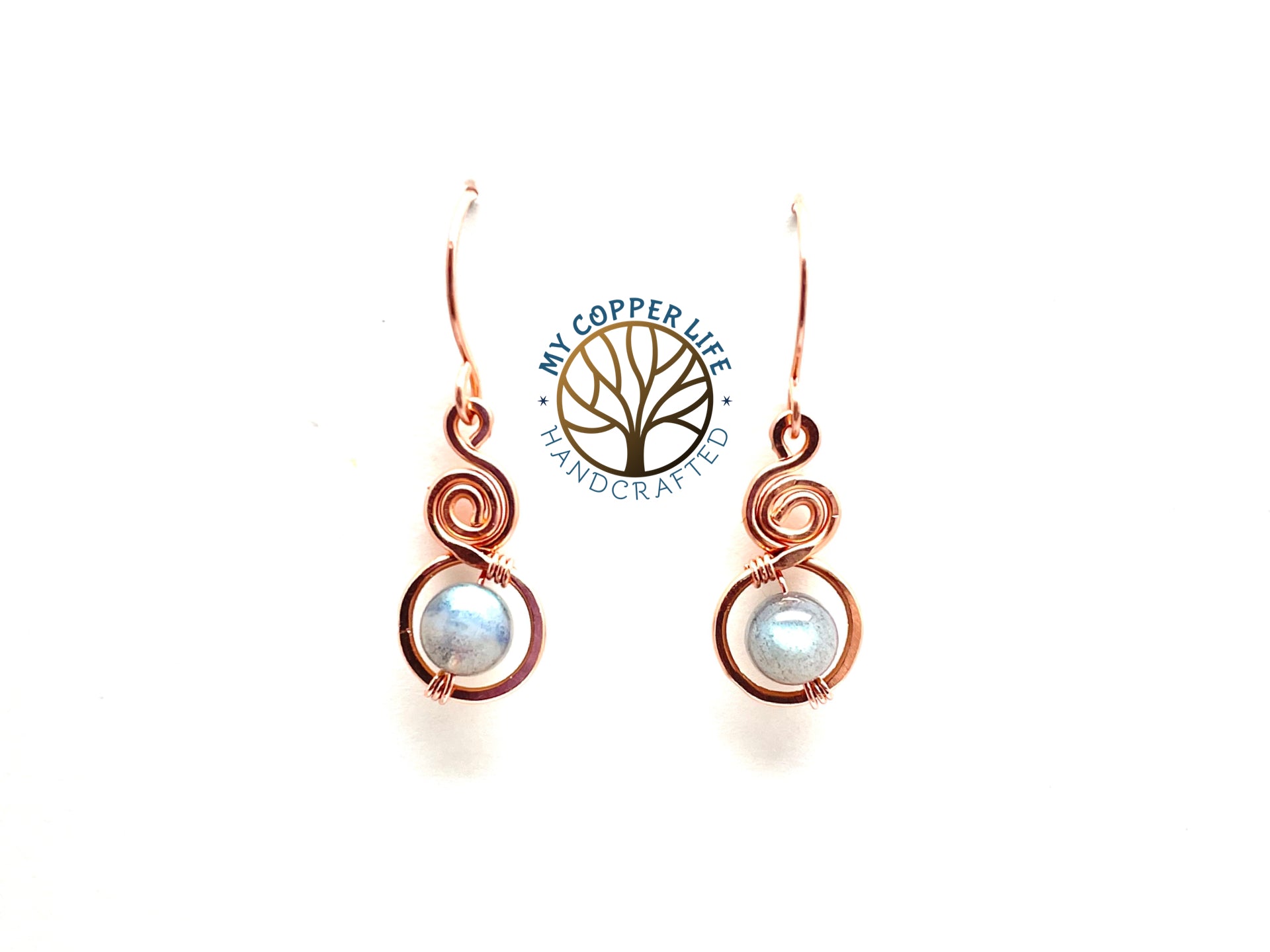 Copper wire and labradorite beaded earrings. Come on handcrafted copper ear wires