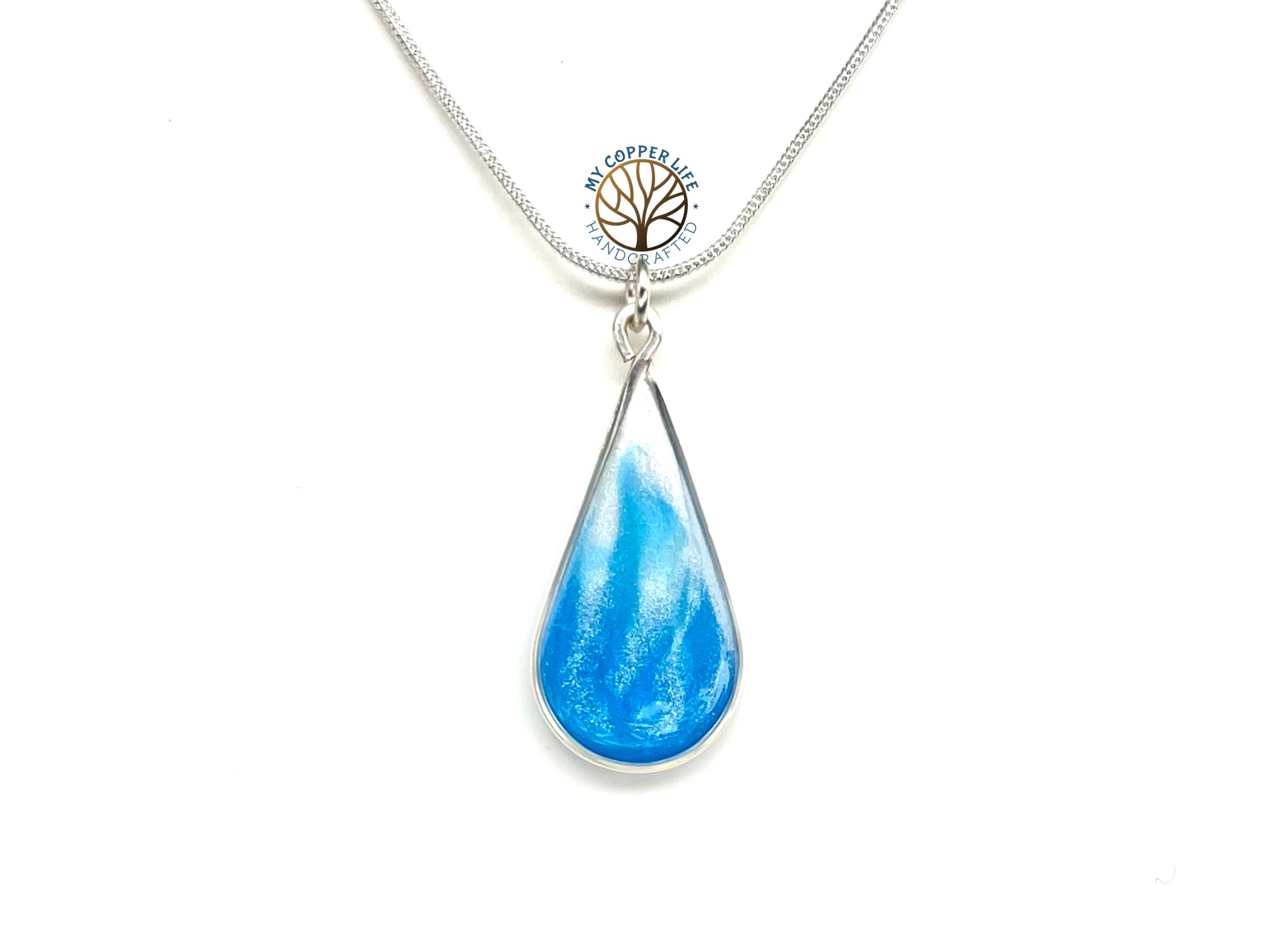 Silver plated copper wire bezel infilled with resin. Comes on a 20” silver snake chain(purple is on an 18”silver snake chain).