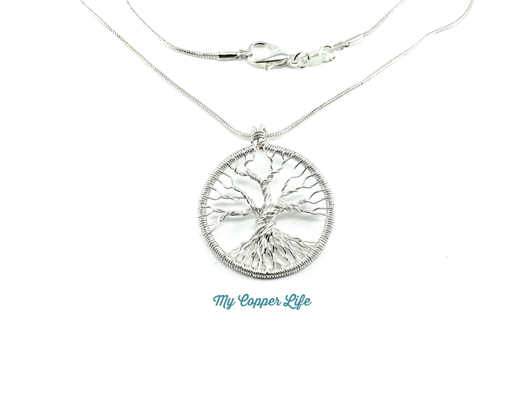 Silver plated copper wire Tree of Life pendant. Comes on a 22" silver snake chain. Each piece of jewelry is hand crafted by me, to accent the already beautiful creation who will wear it!